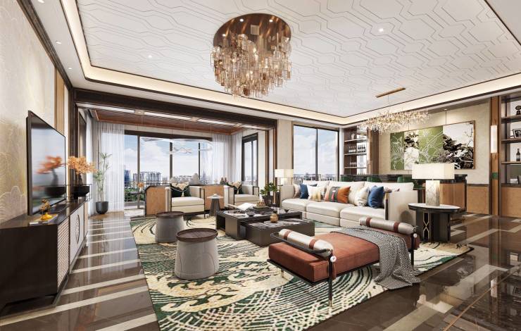 星河湾独创星中式美学,臻选原生奢材,集萃阿玛尼棕大理石、纪梵希灰大理石、太古青金大理石、梦幻绿奢石等数十种名贵石材,并以星河湾4.0标准的至高营造准则精细打磨。
