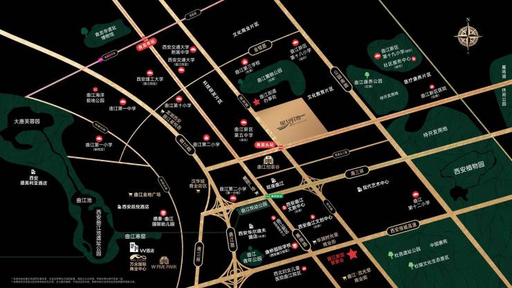 【曲江星河湾项目】位置:曲江QCIC板块,创意谷东北侧、属于曲江产业园之一的西安文化科教园封面位置。黄渠头二路和新安路交汇处东北角。