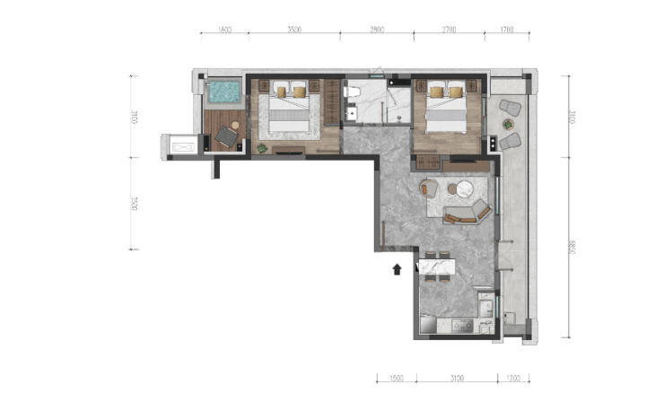 臻选朴树、茶条槭、桂花、银杏、造型松等名贵树种全冠移植,以山地自然之景,营造归林自然的冥想花园。将多样式的植物组团、树阵置于归家之路,在观景平台上看层层美景相互叠加,所经之路步移景异、寻境觅心。