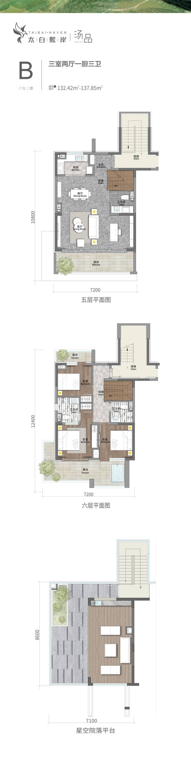 建筑面积约:132.42~137.85㎡