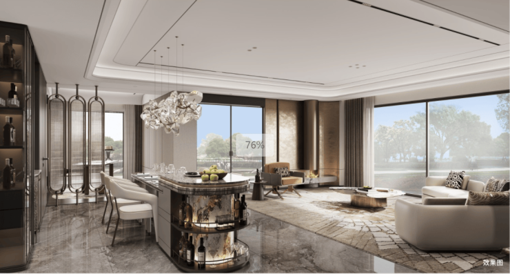 酒店式大堂、沉浸式无界流觞会客厅、高定归家入户客厅、车库门厅归家体系多元归家空间串联,每一步都极尽奢华与尊贵,诉说至高归家体验。