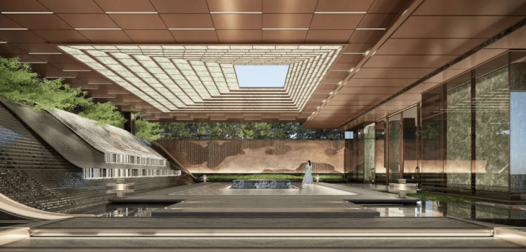 沿袭东方建筑布局,引朱雀入院,规划一心一轴两环六景,匠呈酒店式奢雅园林。