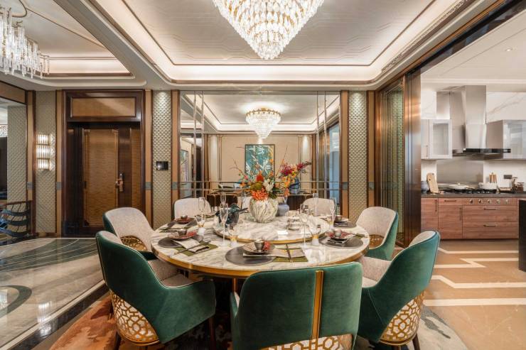 星河湾独创星中式美学,臻选原生奢材,集萃阿玛尼棕大理石、纪梵希灰大理石、太古青金大理石、梦幻绿奢石等数十种名贵石材,并以星河湾4.0标准的至高营造准则精细打磨。