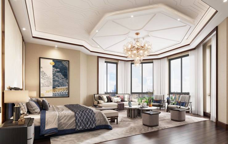星中式传统美学布局,中轴贯连大境,南向最大约19.6m面宽,约3.5-3.6米层高设计,多厅恢弘建制,层峰荣耀气场,最大约80㎡星级主寝,全系规制,独享贵胄起居。