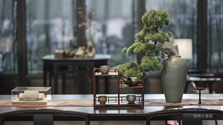 中式高定会所,集萃室内泳池、镜水书馆、会谈雅厅、空中庭院、湖心茶舍、博雅水堂等多元空间,满足全龄业主休闲娱乐、社交观景所需。圈层往来,高知会晤,颐养身心,演绎层峯生活礼赞。