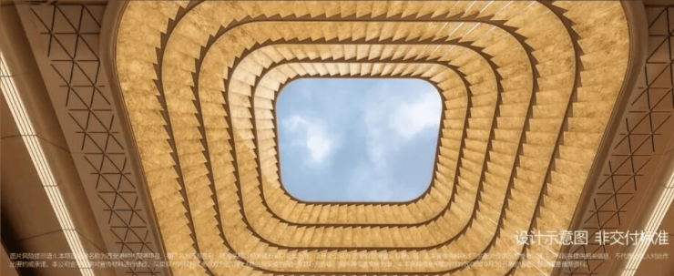 以纽约安缦酒店为灵感,打造约83米恢弘归家仪式感大门。单侧5级递进,整面9级规制,中心视觉焦点以中国古建经典“藻井”形制创新演绎,打造金羽华盖。俯仰之间,气度非凡。