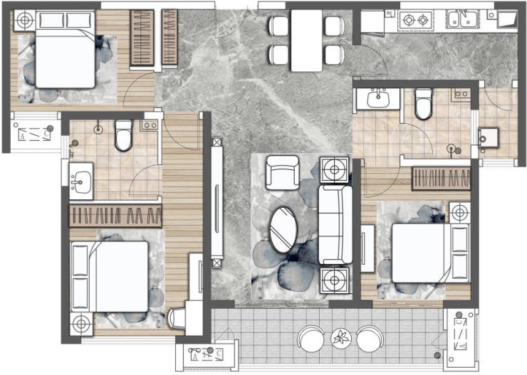 C户型 建面约143㎡ 三室两厅两卫
