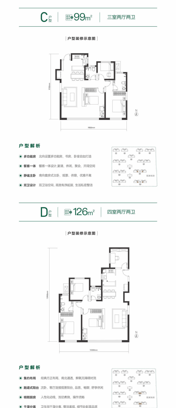 建筑面积约 99-129m全周期户型设计,舒适三居、改善大四房,通透方正布局、宽幕横厅等设计,功能兼顾优雅,从二人世界、二孩家庭到三代同堂,满足现代家庭多重需求,开启理想生活新篇章。