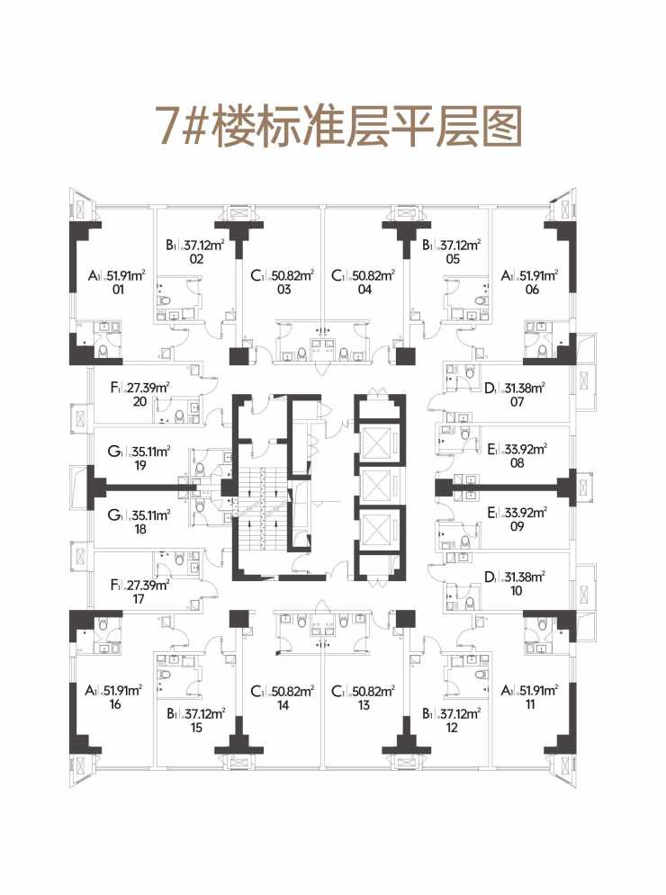 公寓7号楼A1户型51.91平米样板间效果图