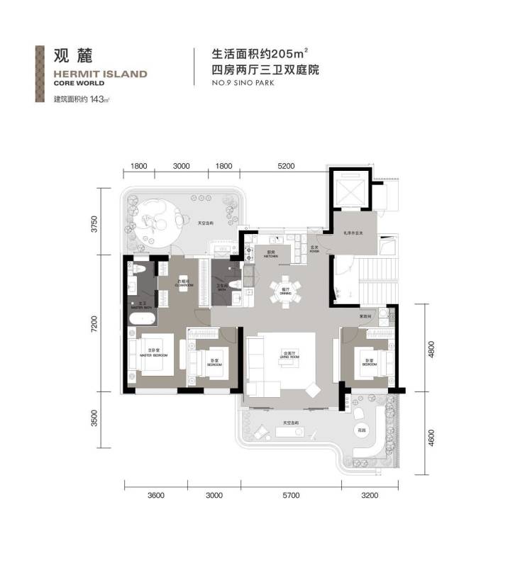 约4.6米超尺度云端庭院,客厅相连约35㎡南向云端庭院