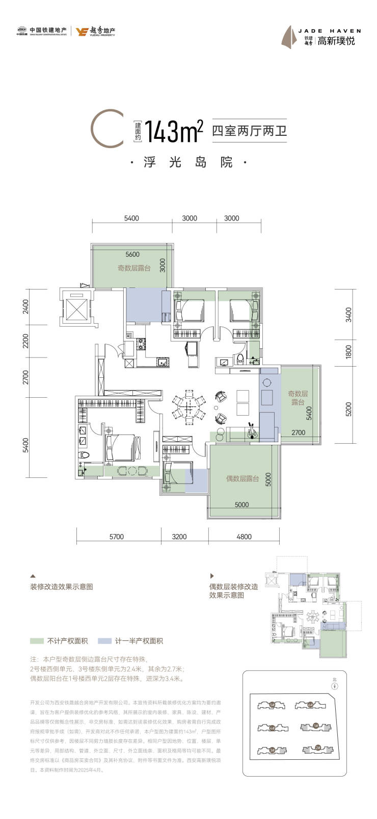 143洋房户型,四房两厅三卫