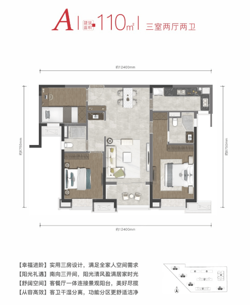 三室两厅两卫的户型有110㎡,128㎡,143㎡,四室两厅两卫户型有198㎡,在这个快餐时代,在什么都讲究效率的时代,万科东望给了属于你的私人空间,让你在忙碌的工作中找到自己的生活与港湾。