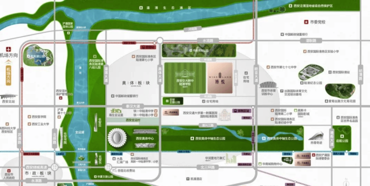 奥体中央公园+灞河景观带,双公园环绕,下楼即公园。