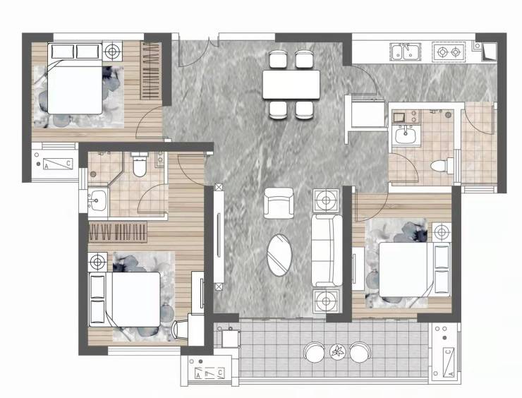 C户型 建面约143㎡ 三室两厅两卫