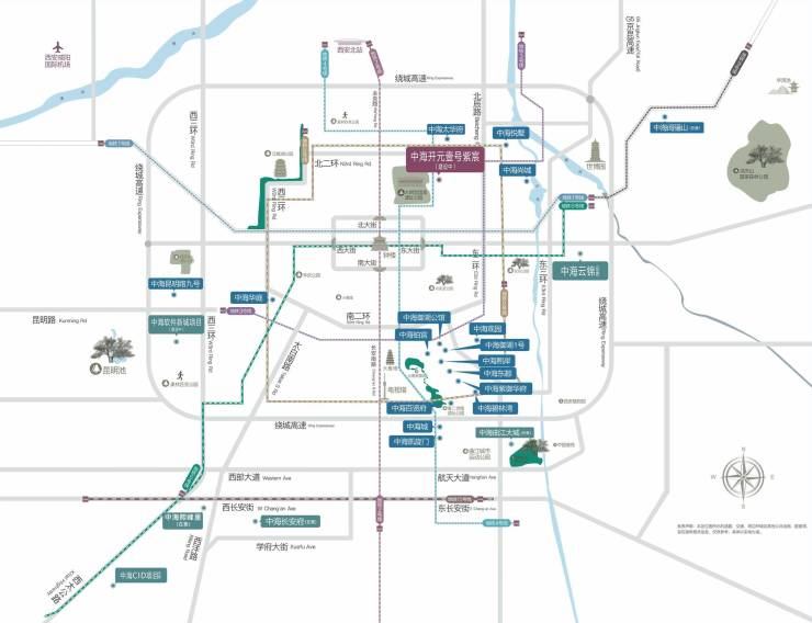 中海开元壹号项目总占地411亩,公园—大明宫国家遗址公园,是二环内规模的品质社区。项目西侧 太华路, 3、4号线(在建)贯穿,交通便捷。项目规划采用唐代“新里坊”设计概念,以中式传统的深灰、浅灰、白色、暗红为主要色彩,建筑高低错落有致。 中海·开元壹号项目一期位于整个项目的东南角,总建面约16万平米,总户数1180套,目前已全部售罄。二期位于整个项目的东北方向,一期的正北方向,占据项目的“内核” ,总占地79522㎡,整体呈“L”型布局,总规划11栋楼,3栋小高层,7栋高层,1栋公寓产品。
