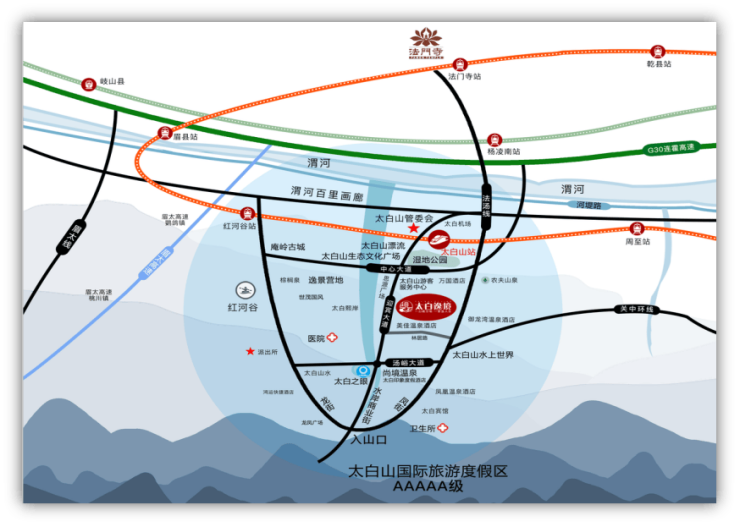 太白逸境距离西安市约100公里,西宝高速、关中环线、G310国道迅速直达。