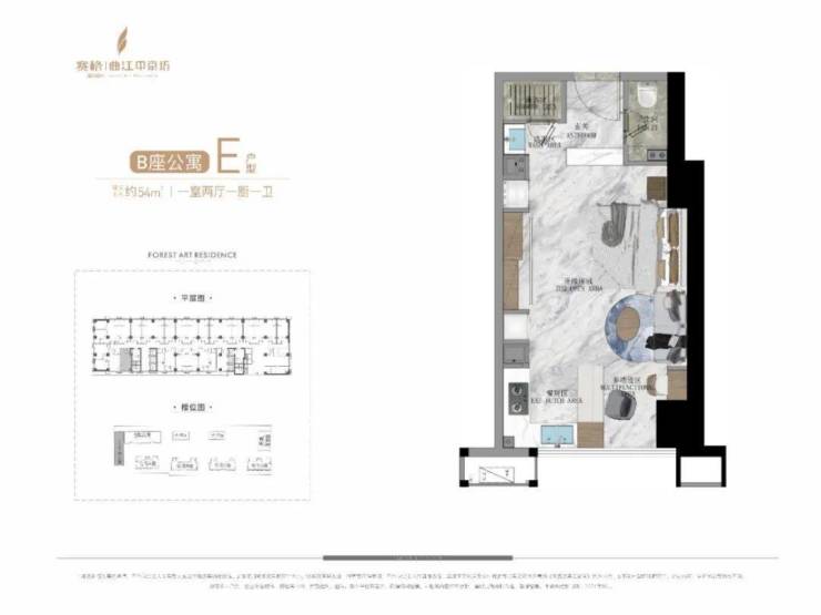 公寓产品中,A栋公寓为一栋约140米高、42F的超高层产品,其中33—42F打造的是建面约500㎡的总裁公寓,产品共计有30多套,单层层高3.9米,客厅挑空7.8米,一梯一户,一层两户,独享五星级入户大堂,2—32F则是约50—161㎡、 4T24户的平层公寓产品。B栋公寓为建面约50—129㎡、6T23户平层产品;C栋公寓为建面约80—120㎡、 4T12户平层产品。