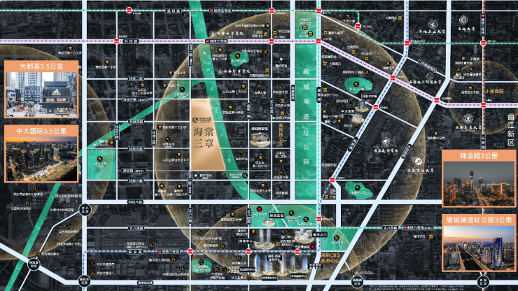 高新之核 生活回归从高新路到唐延路,从锦业路到皂河生态公园,高新区的发展均以城市轴脉为趋势,随着产业南进,新一代高新绿轴(皂河生态公园)成为区域发展的重中之重,领衔高端生活快速回归。