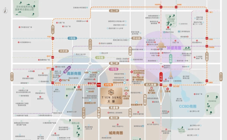 近享8号环线安化门站,无缝串联地铁1/2/3/5/6号线,与城市主干道丈八东路、电子正街、南三环构筑立体交通路网,有效缩短通勤时间,放慢生活的步履。