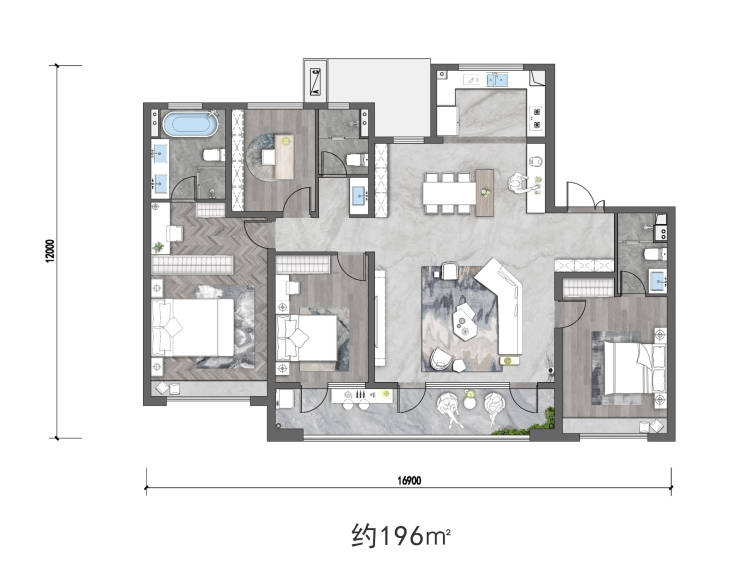 【产品面积】建筑面积约110㎡、130㎡、143㎡、196㎡