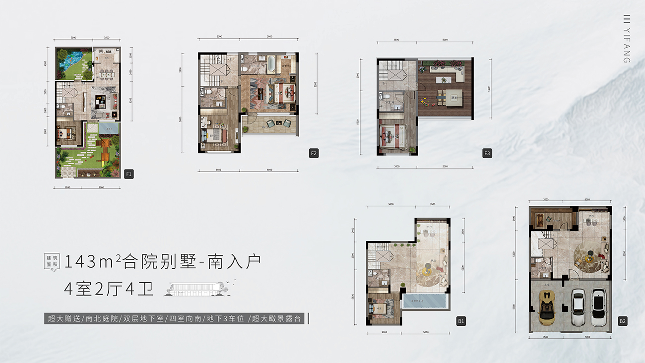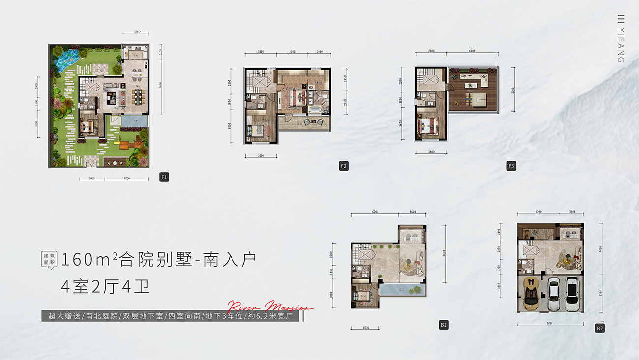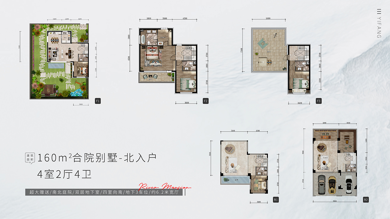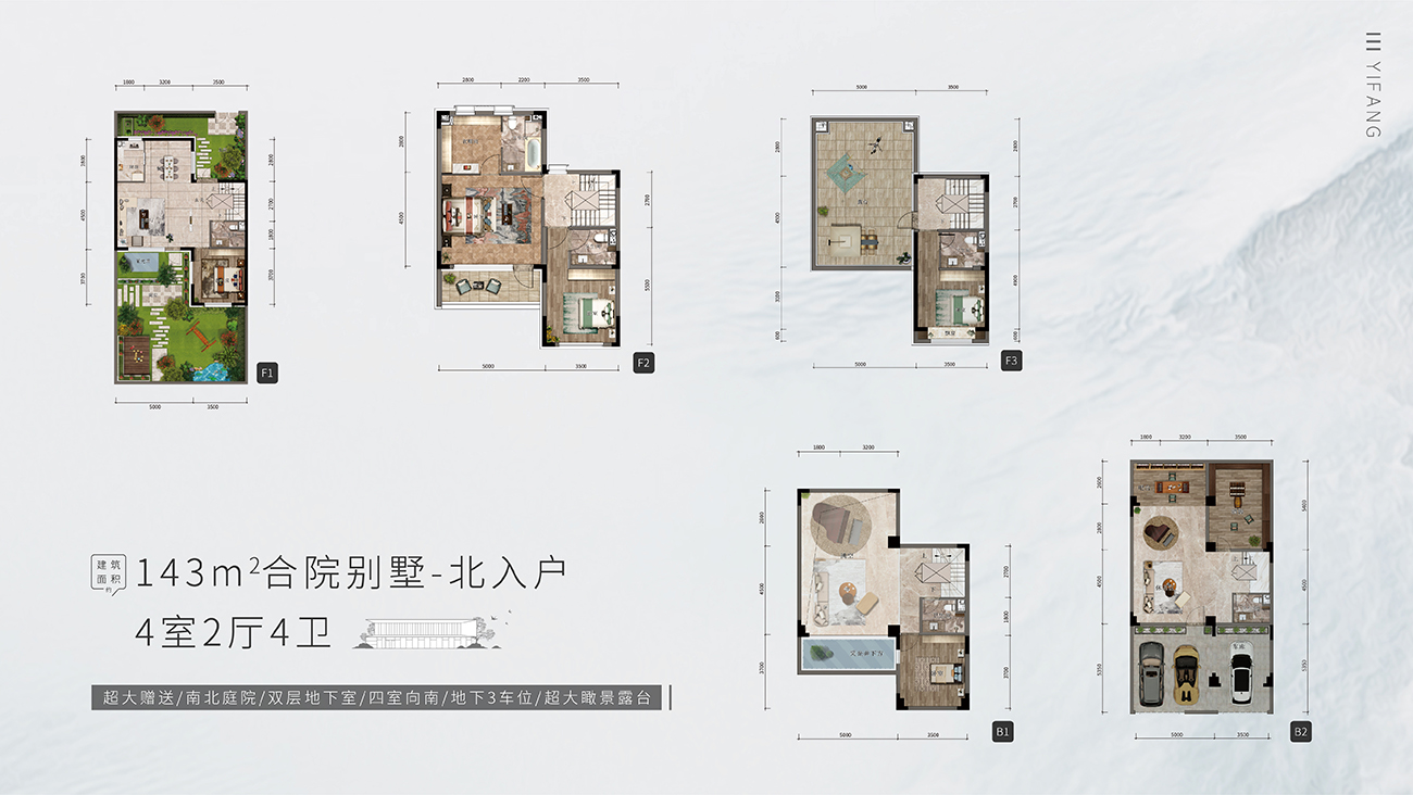 项目整体规划为四进式低密墅境住区,涵盖建筑面积约143㎡合院别墅、建筑面积约100-120㎡瞰河高层。其中,143㎡合院别墅以5室向南格局、独门独入户花园、宽景阔尺天台,重塑别墅价值坐标;100-120㎡瞰河高层以宽尺客厅空间、超高得房率,为城市奋斗者打造理想栖居之所~