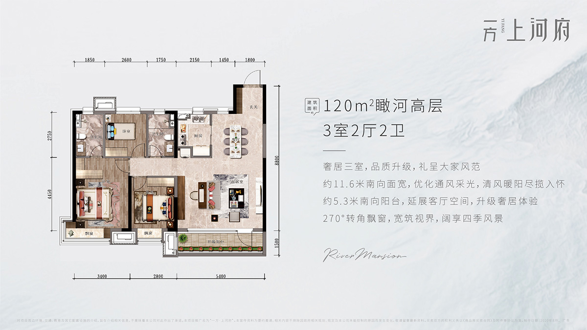 3室2厅2卫-120㎡瞰河高层