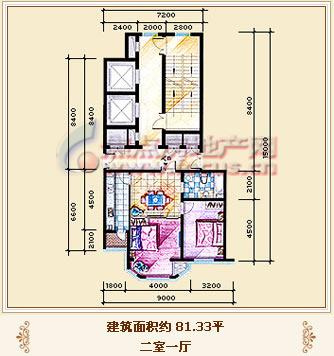 2室1厅1卫-建赏欧洲二室一厅一卫81.33平方米