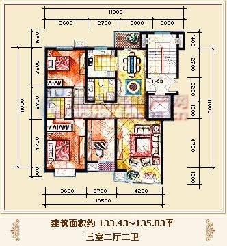 3室2厅2卫-建赏欧洲三室二厅二卫133.43-135.83平方米