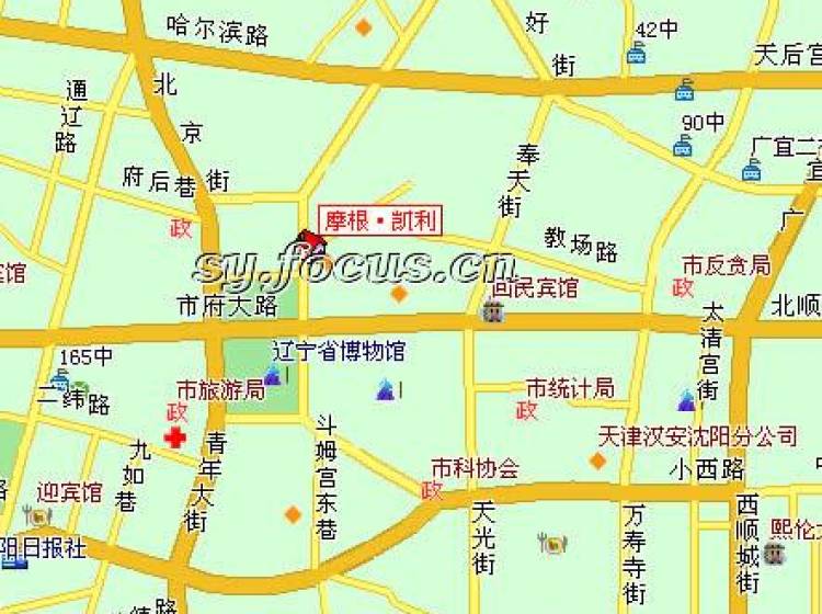 火炬大厦、金融大厦、省博物馆、辽宁大剧院、惠工广场、乐购、家乐福、
