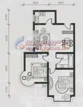 2室2厅1卫-摩根·凯利二室二厅一卫86.38平方米