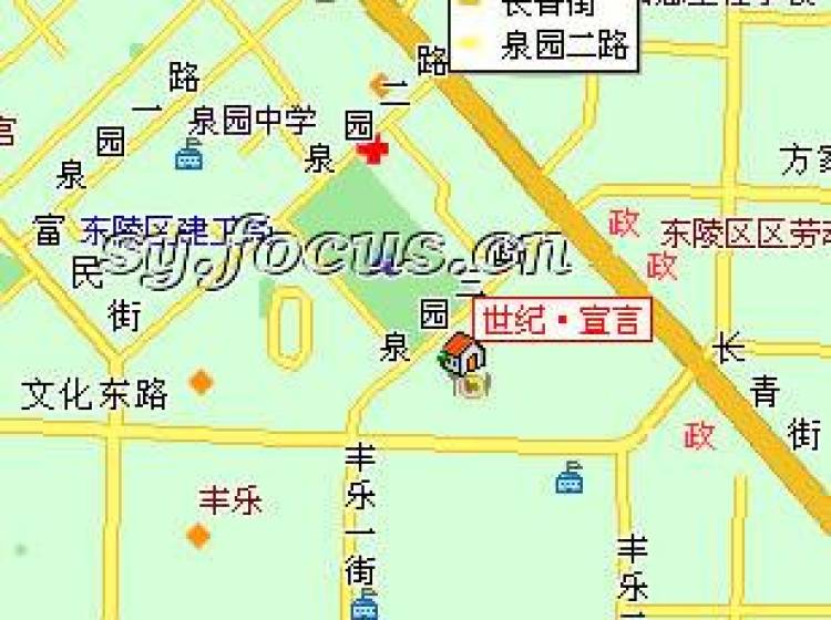 北毗东陵区体育场、游泳馆、泉园别墅区,被长青街、文化东路两条主干路环抱。中国鞋城、五爱市场、家装市场近在咫尺,黄金学院、51中学、育鹏小学、东陵区中心医院簇拥周边以合围之势将其环绕。