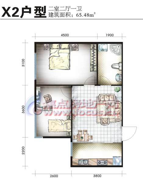 2室2厅1卫-富海云天两室两厅一卫65.48平方米