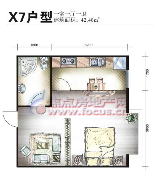 1室1厅1卫-富海云天一室一厅一卫42.48平方米