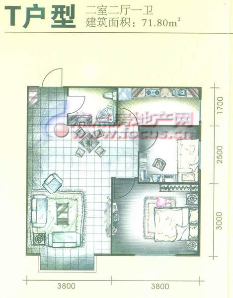2室2厅1卫-富海云天二室二厅一卫71.80平方米