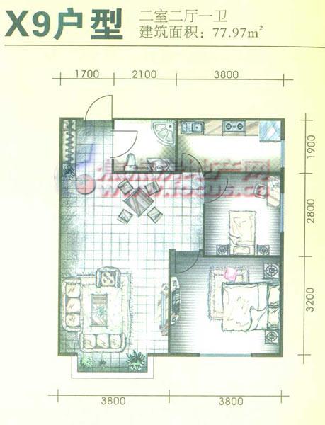 2室2厅1卫-富海云天二室二厅一卫77.97平方米