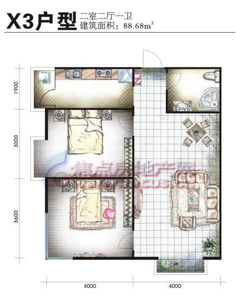 2室2厅1卫-富海云天两室两厅一卫88.68平方米