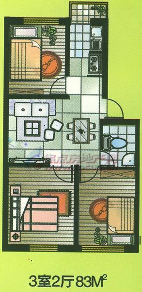 3室2厅1卫-阳光·碧水园三室两厅一卫83平方米
