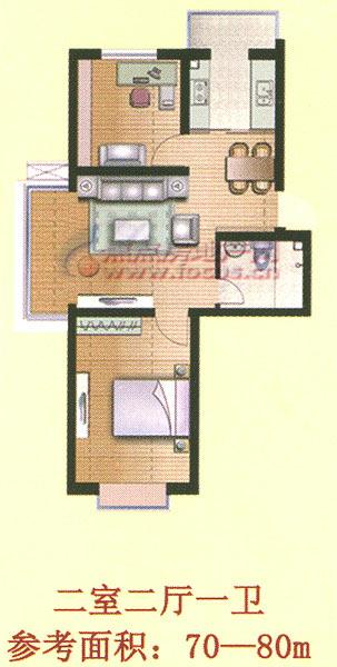 2室2厅1卫-阳光·碧水园二室二厅一卫70-80平方米
