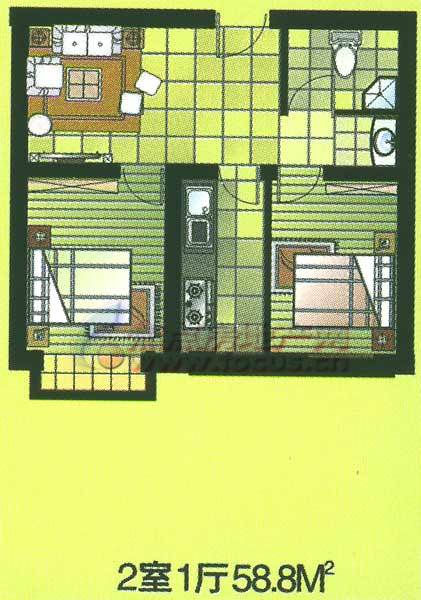 2室1厅1卫-阳光·碧水园两室一厅一卫58.8平方米