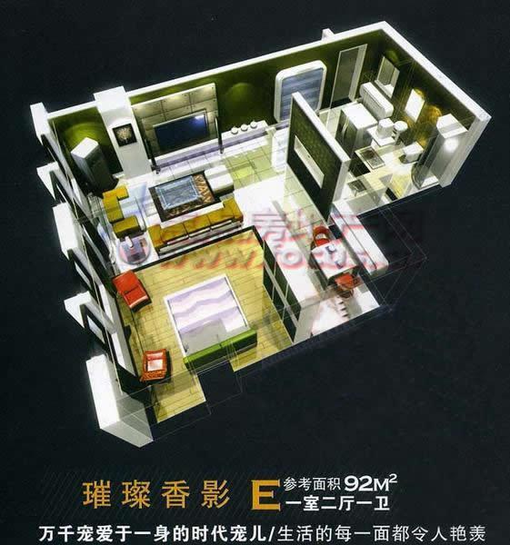 1室2厅1卫-海丽德盛世晶一室二厅一卫92平方米