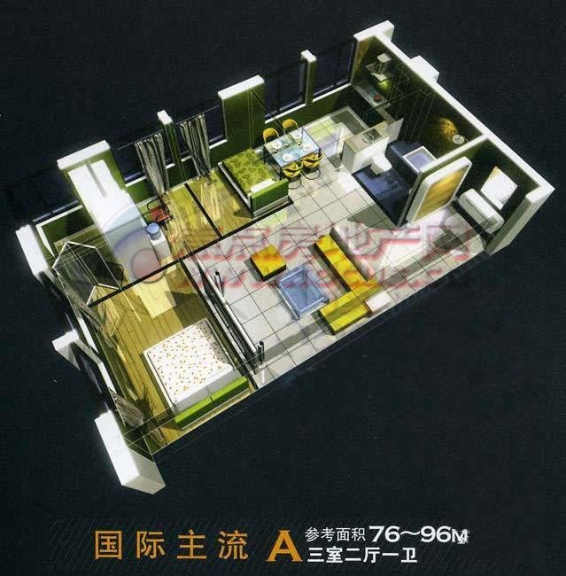 3室2厅1卫-海丽德盛世晶三室二厅一卫76-96平方米