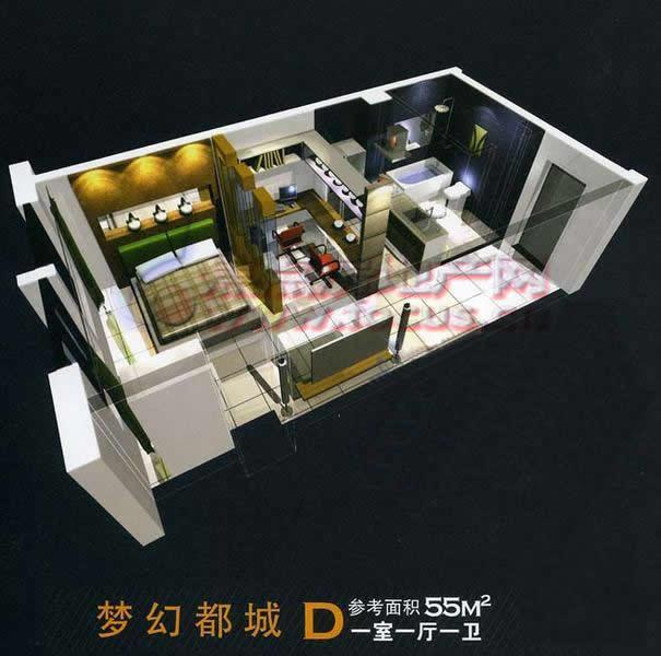 1室1厅1卫-海丽德盛世晶一室一厅一卫55平方米