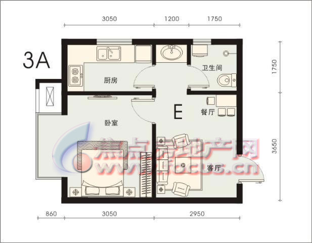 1室1厅1卫-三隆春天花园1室1厅1厨1卫43.00㎡