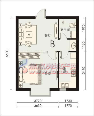 1室1厅1卫-三隆春天花园1室1厅1厨1卫48.00㎡