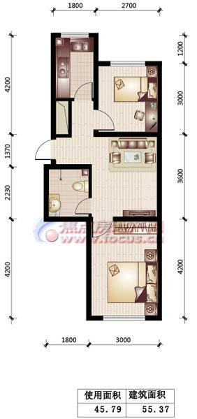 2室1厅1卫-阳光·书香园两室一厅一卫55.37平方米