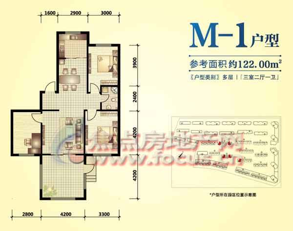 3室2厅1卫-益格名邸三室二厅一卫约122平方米