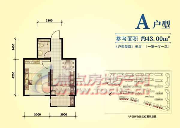 1室1厅1卫-益格名邸一室一厅一卫约43平方米