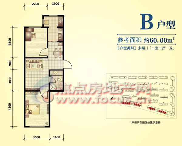 2室2厅1卫-益格名邸二室二厅一卫约60平方米