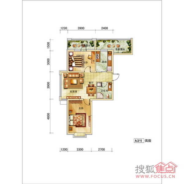 0室-金沙水木城典高层A-3户型