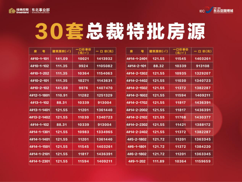 真诚回馈 仅30套总裁特批房源